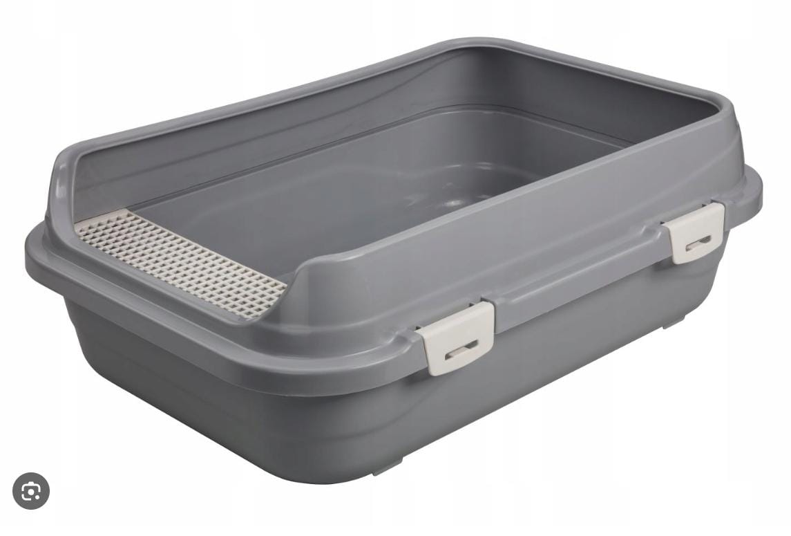 Bac à litière passoire ouvert, conçu pour faciliter le nettoyage grâce à un système de tamisage efficace, offrant une gestion facile de la litière.