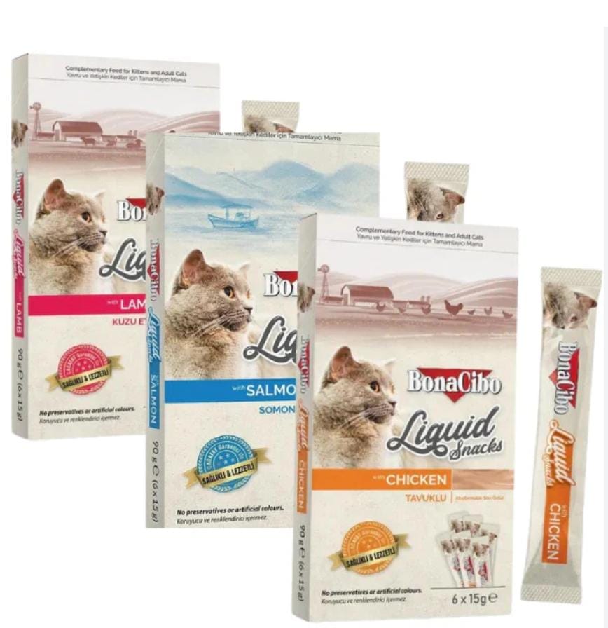 Le liquide snack BonaCibo pour chat est une friandise humide pratique, spécialement conçue pour offrir un moment de plaisir à votre félin tout en apportant des nutriments essentiels.