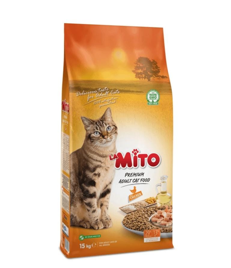 Croquettes Mito 15kg formulées spécialement pour chats, fournissant une alimentation équilibrée, riche en protéines et nutriments essentiels pour soutenir la santé et la vitalité.
